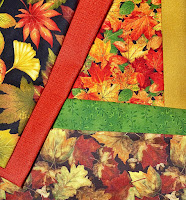 Another easy way to make a table runner is to cut a piece of fabric with fall leaves the width and length you want, then add a two inch plain border around it. (See three examples in picture below.)